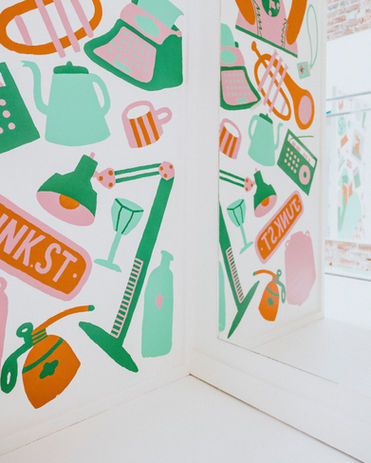 Mural for shop changing rooms. See more murals for Brica Brac here